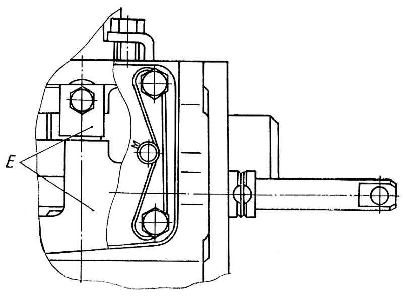 Номер варианта направляющей пластины нанесите на соответствующей опоре рейки в месте Е ( рис. 167 ). Окончательно закрепите на рейке 20 ( см. рис. 158 ) поводок 18 призонным болтом с пружинной шайбой.